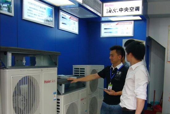 工作人员正在为消费者介绍海尔中央空调产品